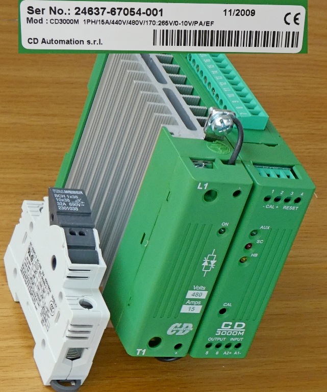 | CD3000M-1PH-15A | CD Automation power controller CD3000M for resistive and inductive last 1-phase Max. current 15 A Voltage 480 V Control 0...10 V External fuse included |